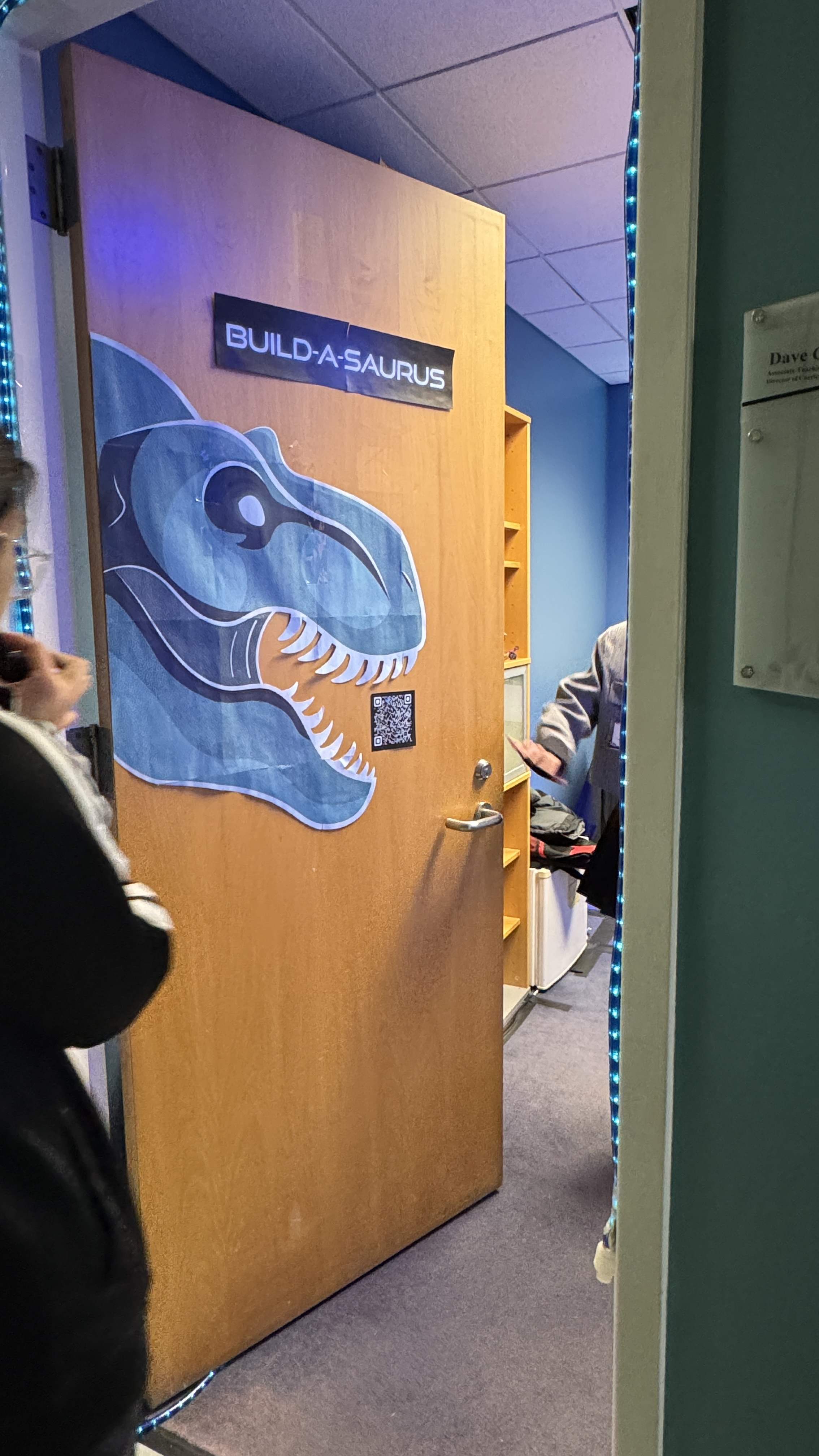 As a location based experience, much of the process involved creating physical props and theming out a room. As we had only one day to theme the room, much of the theming was small, such as a paper dinosaur on the door and over 40 dinosaur figurines scattered on shelves.