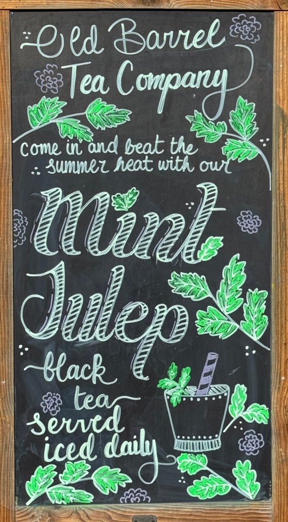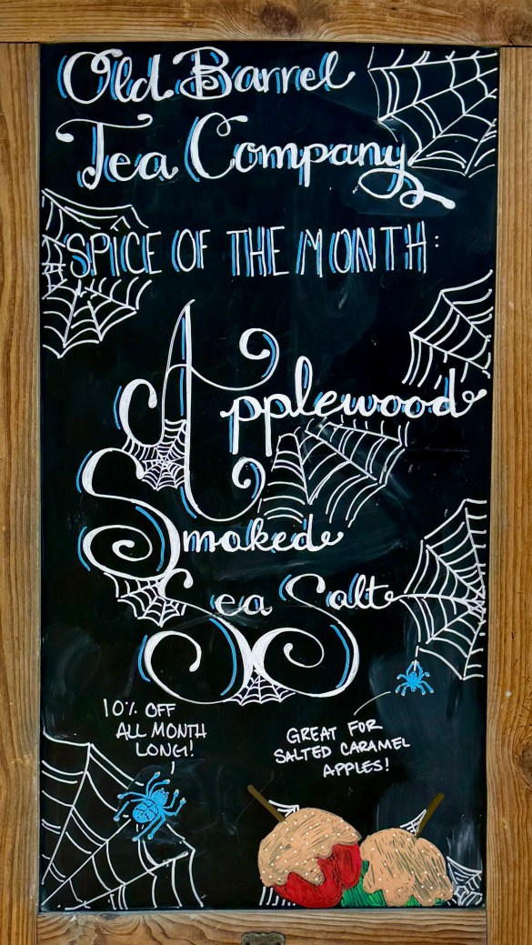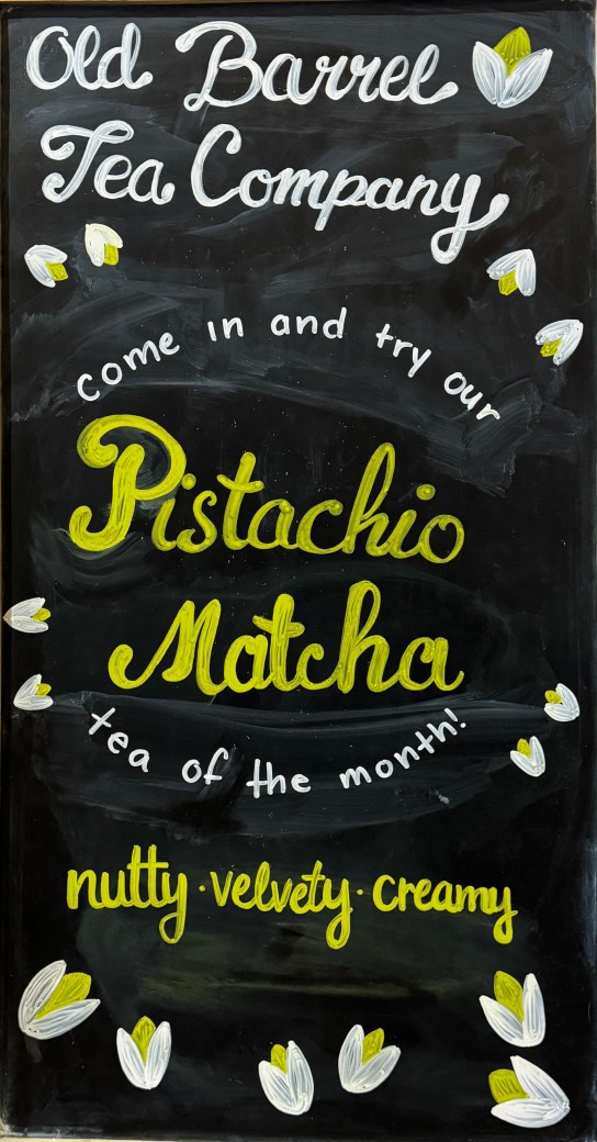 A selection of hand painted signs created for Old Barrel Tea Company,